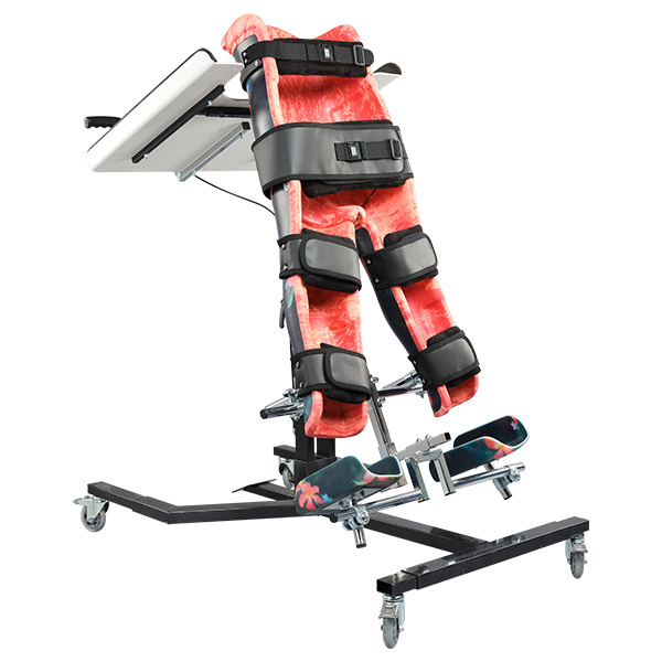- Associe confort et sécurité dans le cadre d’un traitement thérapeutique et d’éveil. Correction de la position et répartition des appuis par un guidage et un soutien du corps en sation debout.